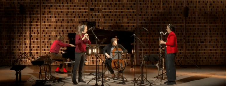 “A pendulum ticks in the wind. Every now and then it is being pushed by low currents of the bass flute. Layers of time move pushed and drawn by their own causalities. Trapeze is dedicated to the memory of Kaija Saariaho.”
